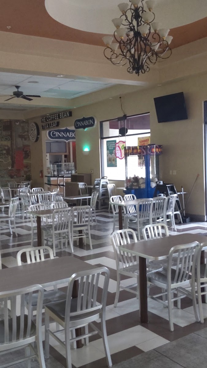 A lot of great food choices like fat burger, buffalo wings, KFC, subway, yogurt land, and many more. Has seating area which was clean.